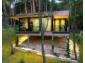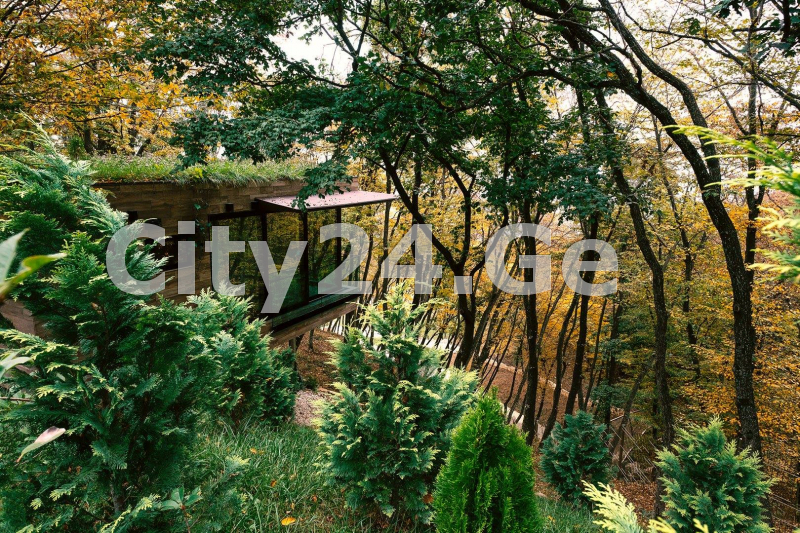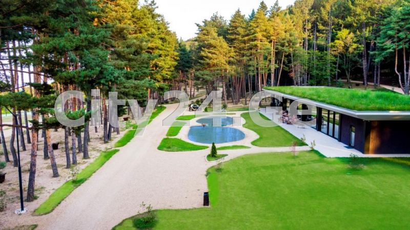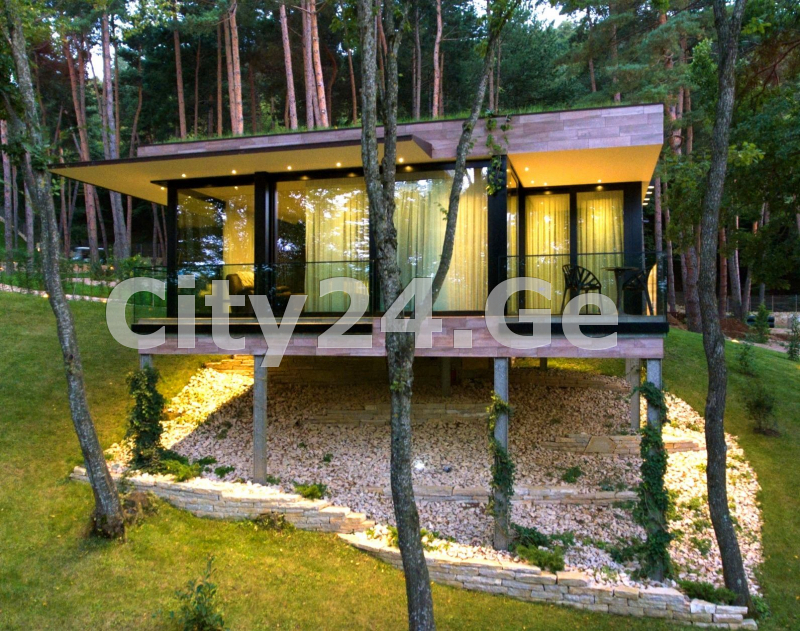 Индивидуальные коттеджи в лесной зоне построены из экологически чистых материалов. Панорамные окна открывают обзор с трех сторон.